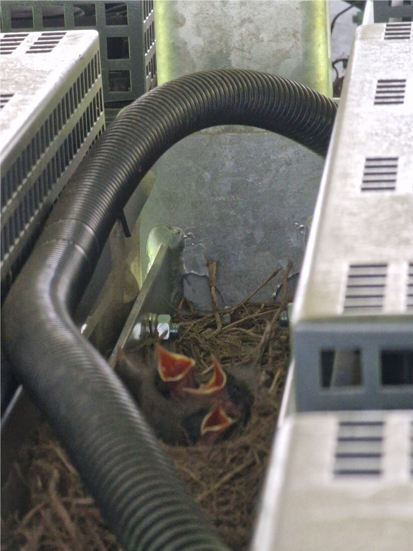 In den beiden Voruntersuchungsjahren 2023 und 2024 konnten auf der Blühfläche 4 bzw. 6 Brutvogelarten mit 11 bzw. 17 Revieren festgestellt werden. Die Feldlerche wies dabei 8 bzw. 9 Reviere auf. Im Jahr 2025 konnten im Bereich der PV-Anlage nur noch eine Vogelart nachgewiesen werden und zwar die Bachstelze, die vorher nicht auf der Fläche vorkam. Sie brütete in der Trafostation der Anlage. Auf der Referenzfläche wurden zwei Grauammer-Reviere, sowie ein Feldlerchen-Revier erfasst. Ein einzelnes Revier der Feldlerche erscheint sehr gering im Bezug zur Flächengröße, wurde aber vermutlich durch die späte Bestellung und die extrem lang anhaltenden Bauarbeiten an den Anlagen verursacht. Es handelt sich auch nur um eine Spätansiedlung, bei der es vermutlich zu keiner Brut mehr kam. Die Ergebnisse aus dem Jahr 2025 lassen somit keine Rückschlüsse auf die Auswirkungen der PV-Anlag auf Brutvögel zu. Es wurde beobachtet, dass die Modulreihen durch Krähen, Falken und Mäusebussarde als Ansitze sowie von der Grauammer als Singwarte genutzt wurden.