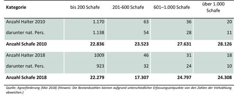 Tab. 1: Entwicklung der Bestände nach Rechtsformen und Herdengrößen