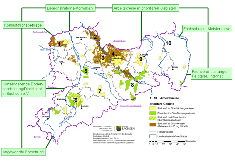 - Überprüfung der Maßnahmenwirksamkeit durch Demonstrationsversuche des LfULG sowie in Arbeitsprojekten und Facharbeiten der Fachschulen für Landwirtschaft